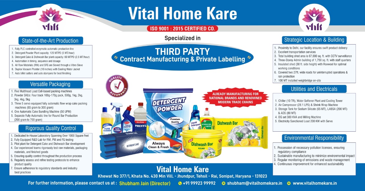 Vital Home Kare is one of the leading suppliers for FENA, D-MART, 5 BHAI, SWAACH, 100 WASH and POWERWASH, providing essential household cleaning and laundry products to these major retailers.